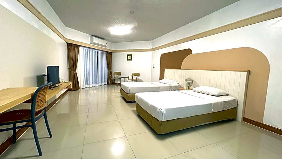 Our Junior Family Room is perfect for a family getaway, offering a spacious 775 sqft with four Twin beds. Enjoy stunning landmark views from your private terrace and relax in the comforting bathtub.